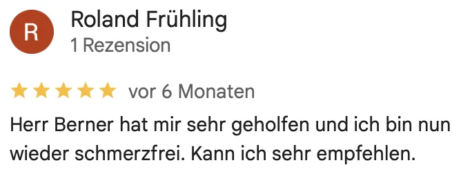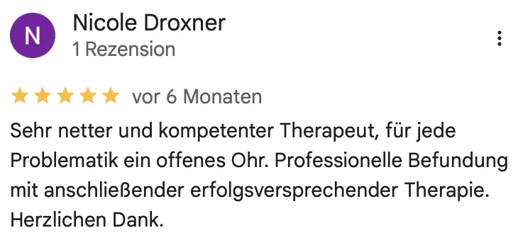 Das hängt von Ihren Beschwerden ab. In der Regel umfasst die Therapie 3 bis 6 Termine. Nach der Analyse im Ersttermin können wir Ihnen eine realistische Einschätzung geben.