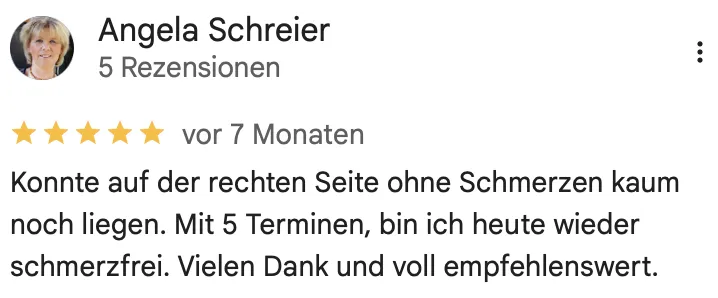 Das hängt von Ihren Beschwerden ab. In der Regel umfasst die Therapie 3 bis 6 Termine. Nach der Analyse im Ersttermin können wir Ihnen eine realistische Einschätzung geben.